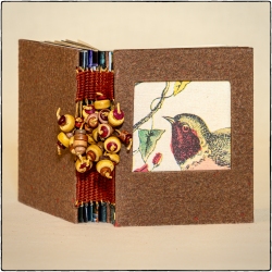 This book was created in a virtual art retreat, May 23, 2020 by Ali Manning of Vintage Page Designs. It is a collaged coptic stitch book. Materials are from my collage stash.